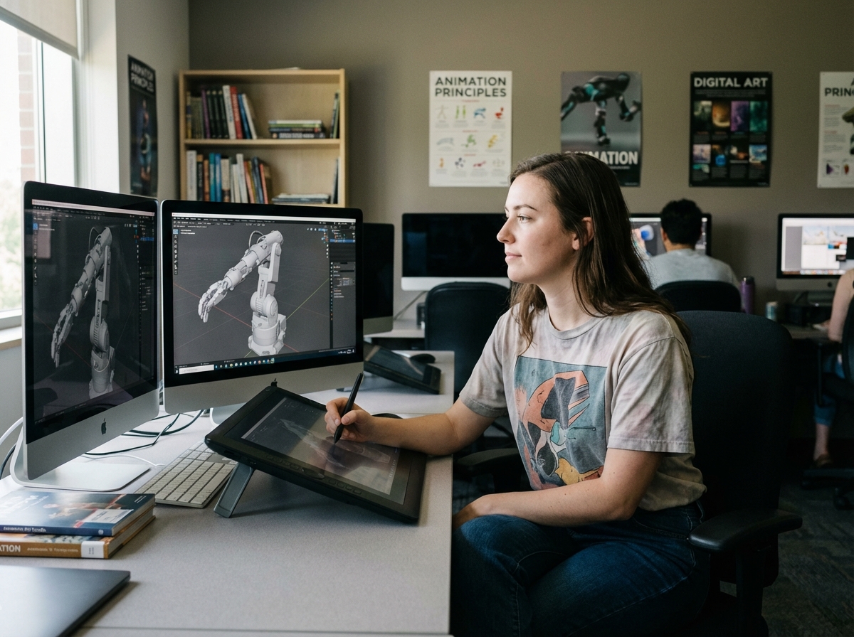 Sur le terrain, la progression des étudiants s’appuie d’abord sur les fondamentaux du dessin, du storyboard et de la mise en scène. Les compétences se déploient ensuite : modélisation, rigging, skinning, animation, compositing, puis lighting et rendu, avec une montée en puissance progressive.